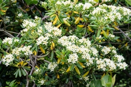 꽃은 7-8월에 피며 자주색 또는 백색이고 화서는 꽃받침과 더불어 퍼진 선모가 밀생한다. 꽃은 줄기 끝이나 그 근처의 엽액에서 나오는 취산상 원추화서로 달린다. 소화경은 길이 3-10mm로 선모가 발생하거나 긴털이 있다. 꽃받침은 종형이며 길이 6mm로서 5개로 깊게 갈라지고 열편은 길이 3mm정도이지만 열편 사이는 백색 막질로서 길이 5mm정도이며 끝이 뾰족하고 녹색 맥이 뚜렷하다. 화관은 끝이 5개로 갈라지며 열편 끝이 둔하고 수술은 5개로서 수술대
