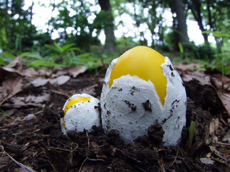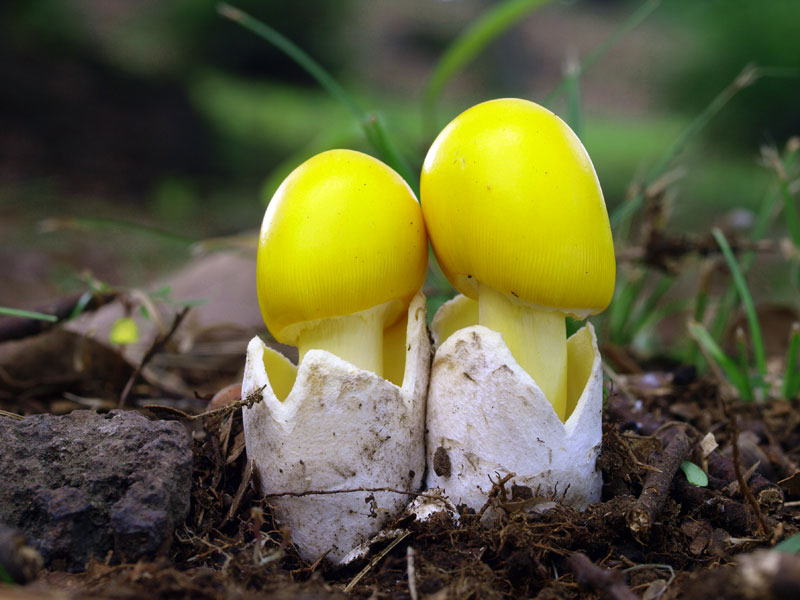 | 특징 | 달걀버섯과 거의 유사한 모양이나 버섯 전체가 황색인 특징이 있다. 노란띠달걀버섯이라고도 했다. 학명이 바뀌었다. 개나리광대버섯(독버섯)에 비해 크며 갓의 가장자리에 선명한 줄금이 보인다 |