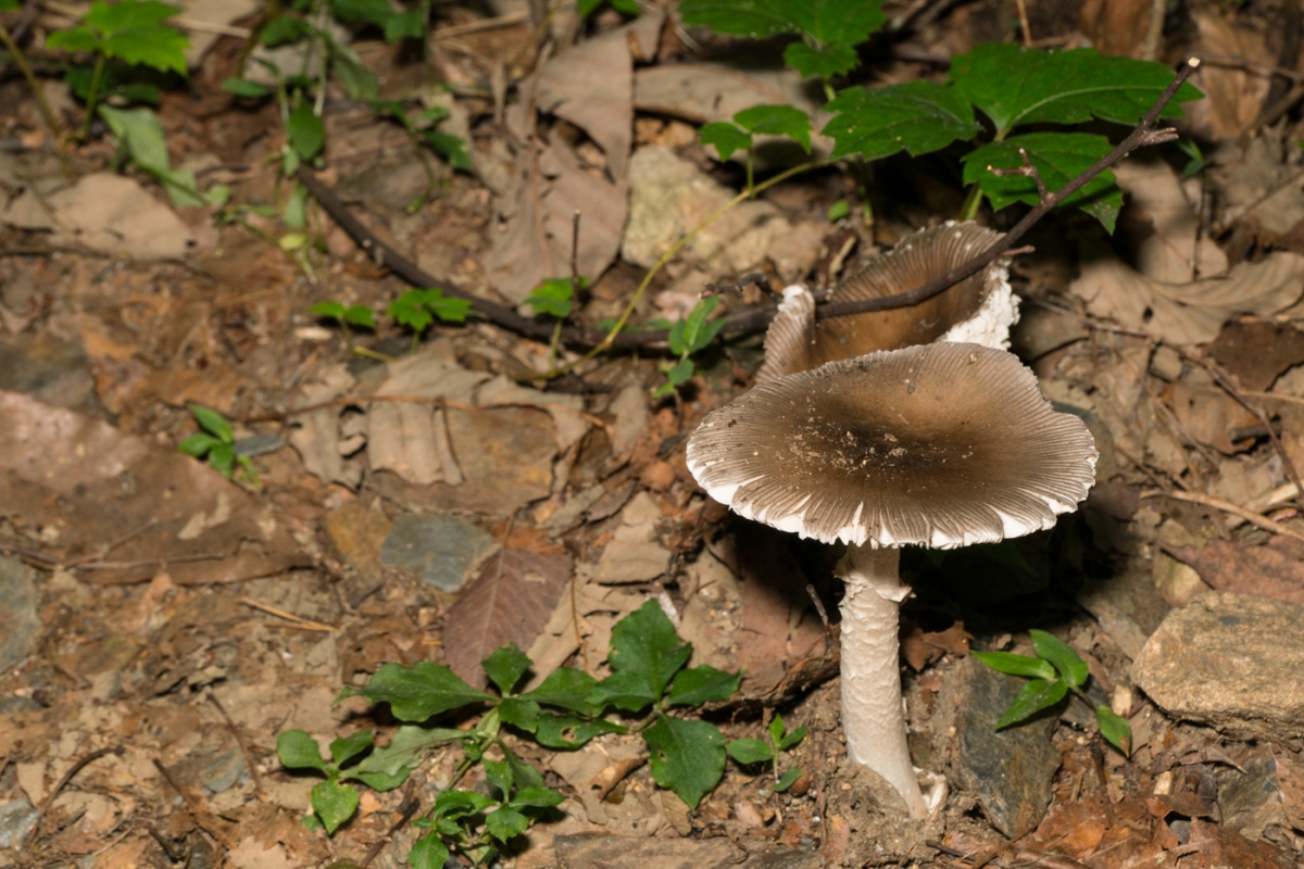 | 특징 | 중형. 갓은 그을음 색, 줄무늬가 있다. 대는 백색(때로는 흑갈색) 다소 긴 편, 위쪽에 백색 고리. 주름살은 백색, 후에 담홍색. 대가 가늘고 길며, 고리가 있다. |