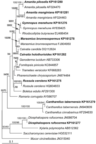 | 출전, 인용문헌 | 이태수. 2016. 식용·약용·독버섯과 한국버섯 목록. 233pp. (재)한택식물원 이태수. 2016. 인터넷. 한국의버섯(www.koreamushroom.kr) Jin Sung Lee, C.M. Kim & H.B. Lee. 2014. Eight Previously Unreported Speces of Fungi Identified in Mt. Manggyeong, Korea. Kor. J. Mycol. 42(4): 344-348. |