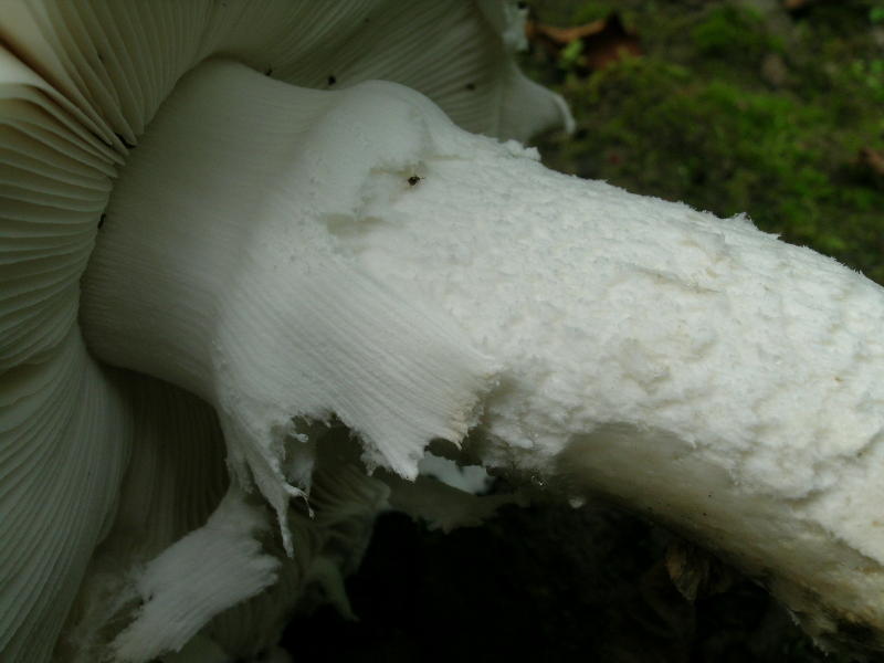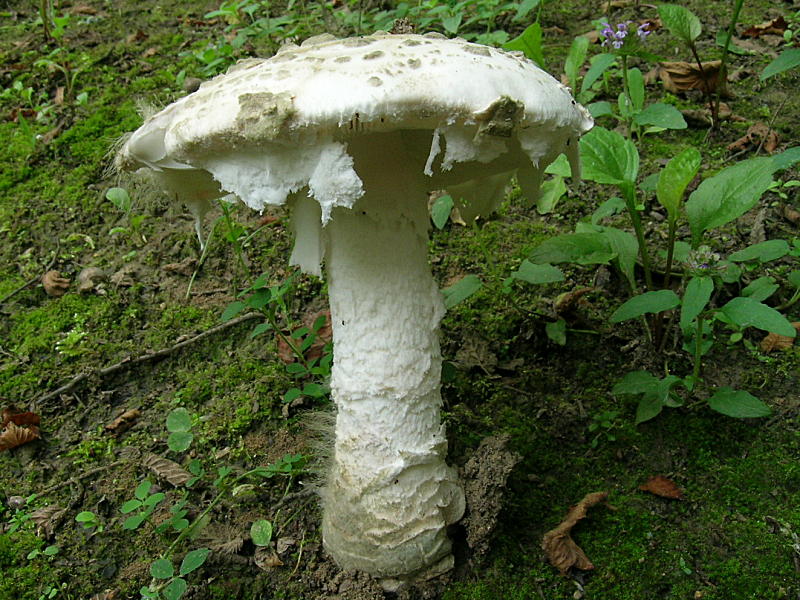 특징 갓은 백색∼연한 회백색, 두껍고 큰 연한 회색 사마귀가 촘촘히 붙고 벗겨지기 쉽다. 가장자리 끝에 분질, 면질의 막편이 오래 부착됨. 사마귀가 쉽게 탈락 특징.
