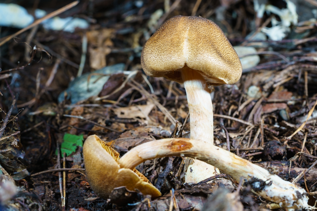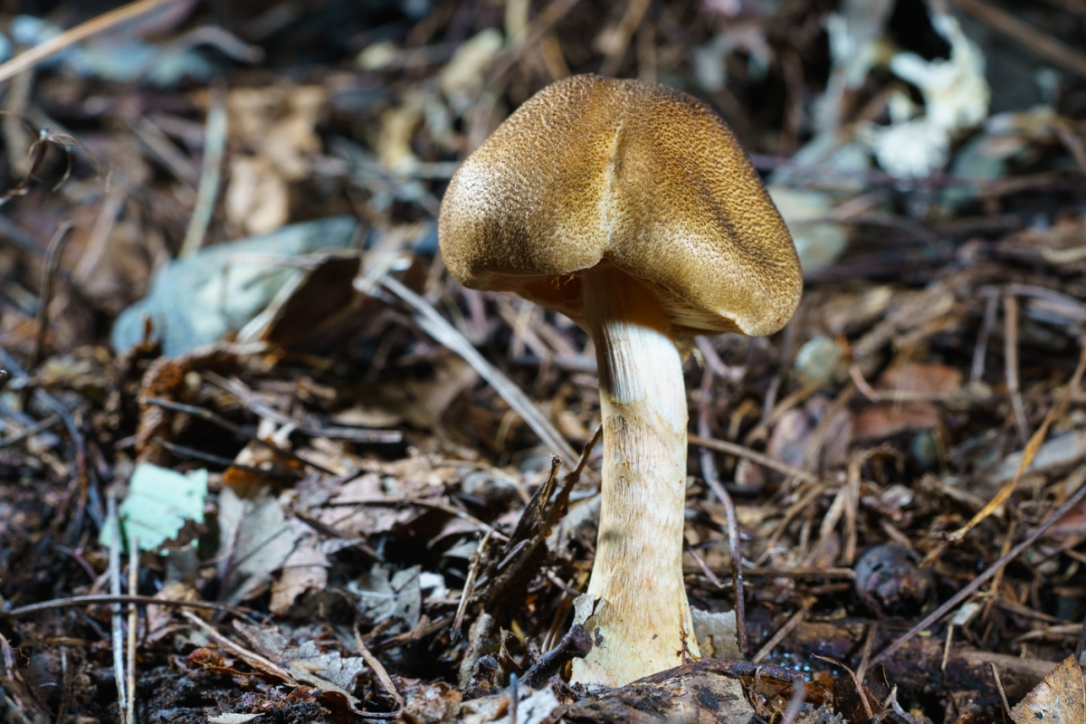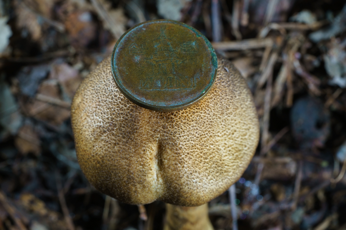 | 특징 | 소형∼중형. 검은 비늘(nigrosquamỏsus) 버섯. 갓은 담황색 바탕에 암갈색 인편 부착, 중앙은 거스름 모양. |