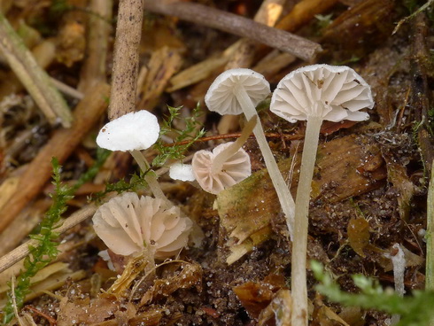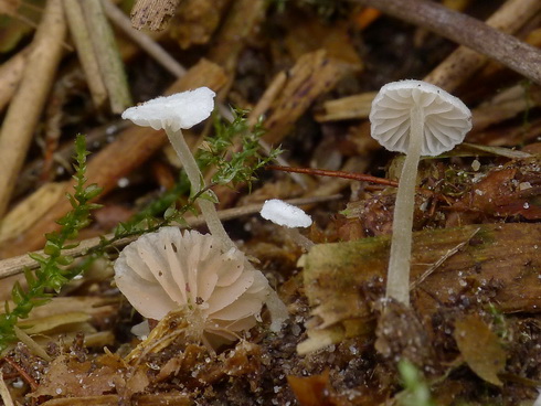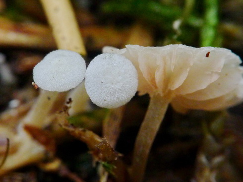 | 특징 | 극소형. 갓은 크림백색 바탕에 미세한 백색 솜털이 있다. 주름살은 백색, 후에 분홍색. 대는 허연색으로 반투명하다. 애주름버섯류와 매우 흡사하여 혼동되기 쉽다. |