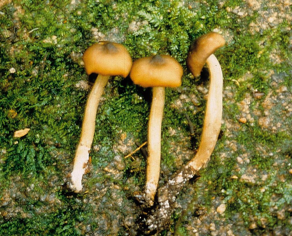 | 특징 | 극소형. 갓은 작은 젖꼭지를 가진 원추형, 둔한 꿀색∼연한 도토리색. 섬유상, 줄무늬가 거의 중앙까지 있다. 주름살과 대는 연한 꿀색. |