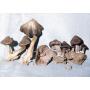 | 자실체 | 갓은 폭 3∼5cm의 소형. 평평하게 퍼진다. 표면은 점성이 없고 회색∼회갈색, 흡습성. 가장자리에는 줄무늬가 있다. 살은 연한 회색, 얇고 부서지기 쉽다. 식독 불명. 주름살은 처음에는 회색이나 후에 분홍색이 된다. 폭이 매우 넓고 촘촘한 편. 날은 고르다. 대는 3∼4cm(굵기 4∼12mm). 회색, 매우 연약하고 견사상 광택이 있다. 속이 비었다. |
