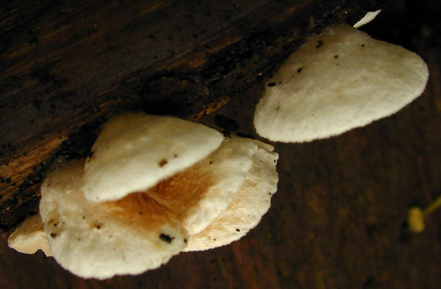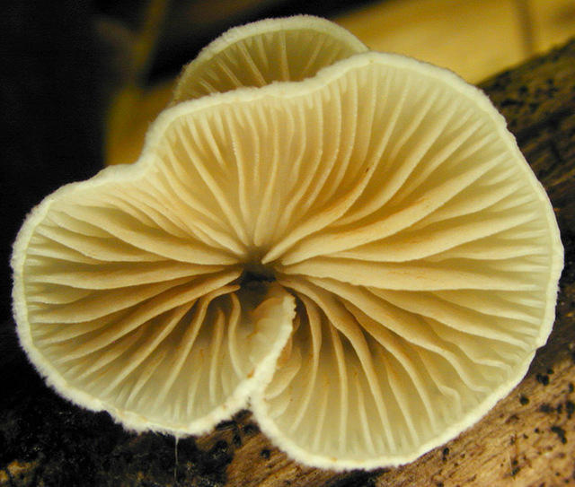 | 특징 | 1.5cm 이하 극소형. 백색이다가 칙칙한 황토색이 되며, 둥근 모양∼조개껍질모양. 측생하며, 측생된 부분에 미세한 털이 있다. 가장자리는 미세한 톱니꼴. 주름살이 성긴 편. 넓은귀버섯아재비라고도 했다. |
