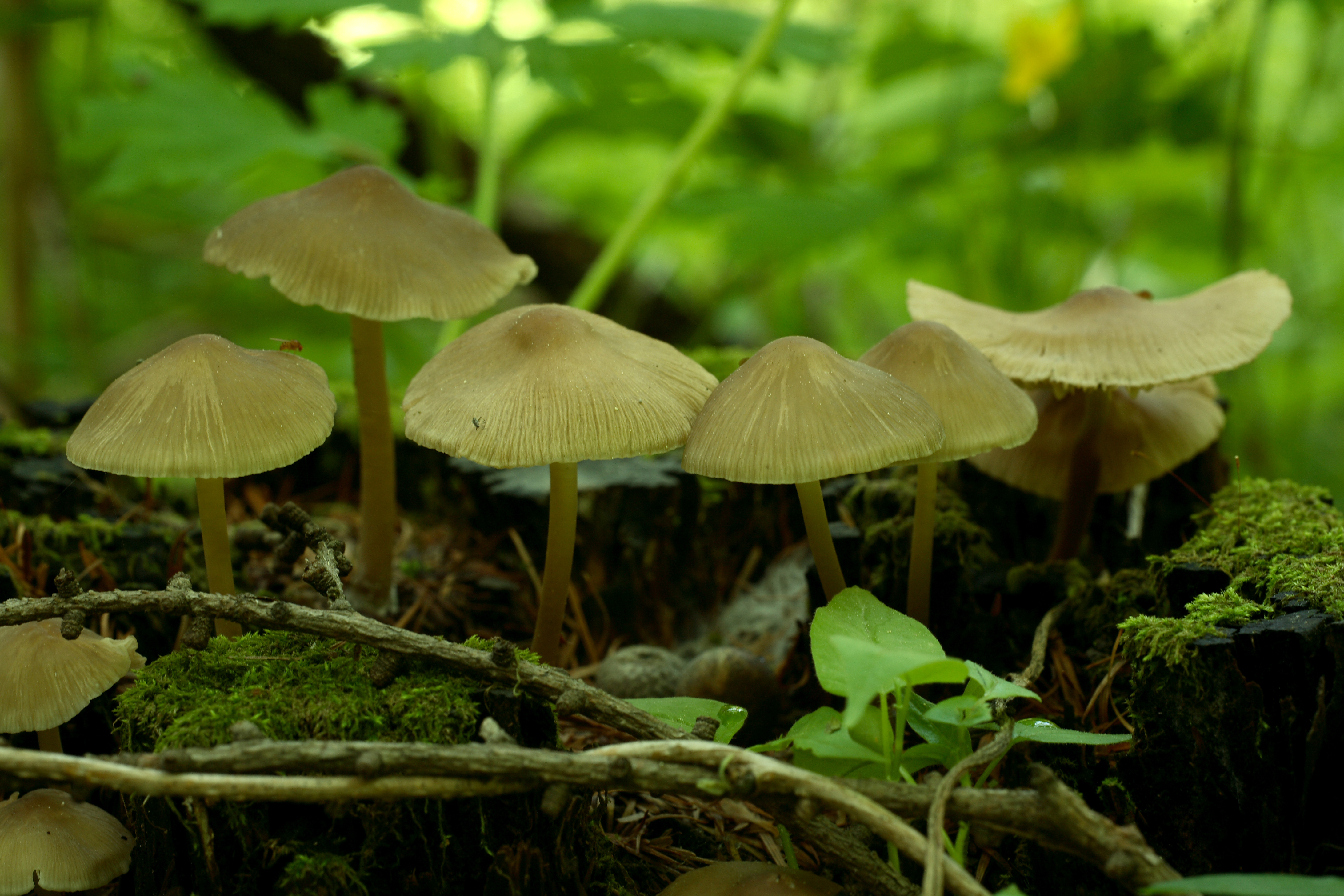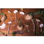 | 자실체 | 갓은 직경 7~23mm 반구형~반반구형에서 편평형으로 전개, 표면은 평활하고, 갈색~적갈색, 중앙부는 짙은 색, 살은 백색 주름살은 끝붙은형이고 백색이며 약간 빽빽하거나 성글다. 대는 2~5 × 0.15~0.35㎝이고 속이 빈 원통형이며 주황색~황회색이다. |