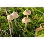 | 자실체 | 갓은 폭 1.5∼2.5(3)cm 정도의 극소형∼소형. 어릴 때는 원추상 종형이다가 후에는 종상 둥근산형이 된다. 중앙은 약간 또는 뚜렷하게 돌출이 된다. 표면은 평활, 광택이 있으며, 방사상으로 갓의 중간 바깥쪽으로 반투명한 줄무늬가 있다. 흡습성, 암회갈색∼황토갈색. 가장자리는 베이지회색으로 다소 연하다. 식독 불명. 주름살은 허연색∼회백색. 다소 방추상이고 어떤 것은 엽맥상을 이룬다. 대는 길이 3∼5cm(굵기1∼2.5mm), 원주상, 가늘고 길며, 때때로 굽어 있다. 평활, 광택이 있으며, 회갈색. 꼭지 쪽은 연하다. 부러지기 쉽고, 밑동은 백색∼허연색 털이 덮여 있다. 속이 비어 있다. |
