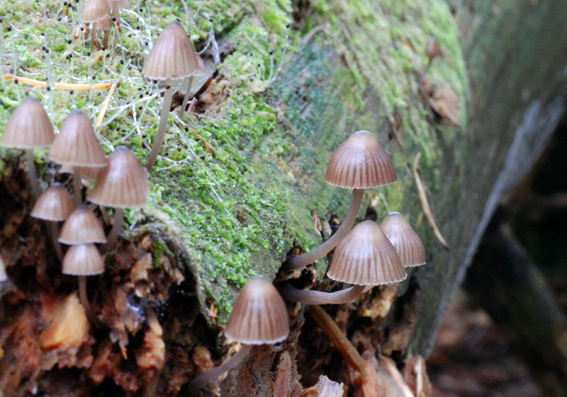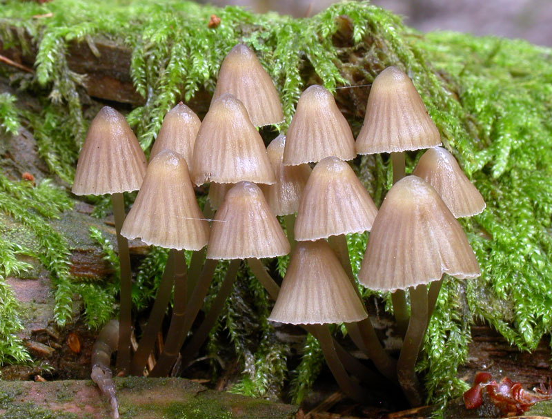 | 특징 | 극소형, 갓은 10~25mm로 종모양에서 원추상의 종모양, 색은 밝은 회갈색에서 검은 회색-적갈색으로 된다. |
