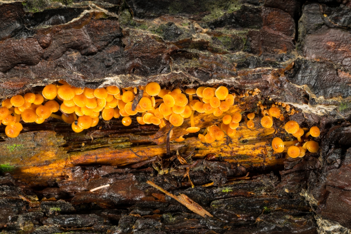 | 특징 | 극소형. 갓은 오렌지갈색, 중앙이 오목한 둥근산형. 대는 가늘고 길며 위쪽은 황색, 아래쪽은 갈색. |