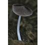 | 자실체 | 갓은 1.5∼2.5cm. 처음에는 아구형, 후에 둥근산형∼평평형이 된다. 표면은 건조, 흡습성, 평활, 백색∼연한 회황색 또는 회녹색. 습할 때는 반투명 줄무늬가 있다. 가장자리는 약간 가는 톱니꼴. 살은 허연색, 얇다. 주름살은 백색, 후에 분홍색, 방추형, 성기며, 대에 떨어진 붙음. 날은 평활하거나 허연색의 분상. 대는 2.5∼4.5cm(굵기 1.5∼3mm). 원주형, 상하 같은 굵기, 표면은 건조하고 세로로 섬유상, 분상, 백색, 밑동은 뚜렷한 원반 모양. |