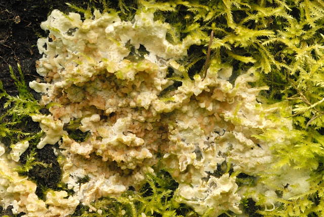 | 특징 | 배착생. 습할 때는 크림색∼회색을 띤 담황토색. 건조할 때는 황토색. 표면은 사마귀모양 무수한 결절. 색깔, 형태 변화가 크다. |