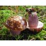 | 자실체 | 갓은 폭 7~15㎝정도로 어릴 때는 반원모양에서 둥근 산 모양을 거쳐 편평하게 된다. 갓 표면은 건조하고 벨벳모양이다가 매끄러워지고, 진한 분홍색 또는 분홍 적색인데 오래되면 옅은 색으로 된다. 살(조직)은 연한 황색으로 상처가 나도 청색으로 변하지 않는다. 맛과 향이 좋은 식용버섯이다. 관공은 황색에서 녹황색으로 변해가며 자루에 바르게 붙은 모양으로 구멍은 작고 원형~다각형이며, 밀도(간격)은 매우 촘촘하다. 상처가 나면 청색으로 변한다. 대는 5~10㎝정도로 곤봉모양 또는 아래쪽으로 굵어지고, 표면은 황색으로 위쪽에 백색의 미세한 그물눈 무늬가 있다. 상처가 나면 청색으로 변한다. |