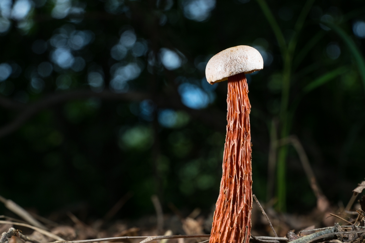 대는 4∼10cm(굵기5∼15mm), 상하 같은 굵기이거나 밑동 쪽이 가늘다. 담적색, 적색 또는 녹슨 황색.