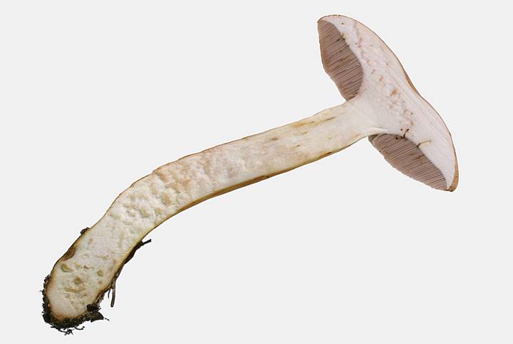 | 특징 | 중형, 갓은 어릴 때는 흑갈색에서 점차 회갈색~ 황갈색으로 변함, 관공은 백색에서 분홍색, 대는 황갈색에서 점차 색이 밝아지고 녹슨 색 얼룩이 생긴다. |