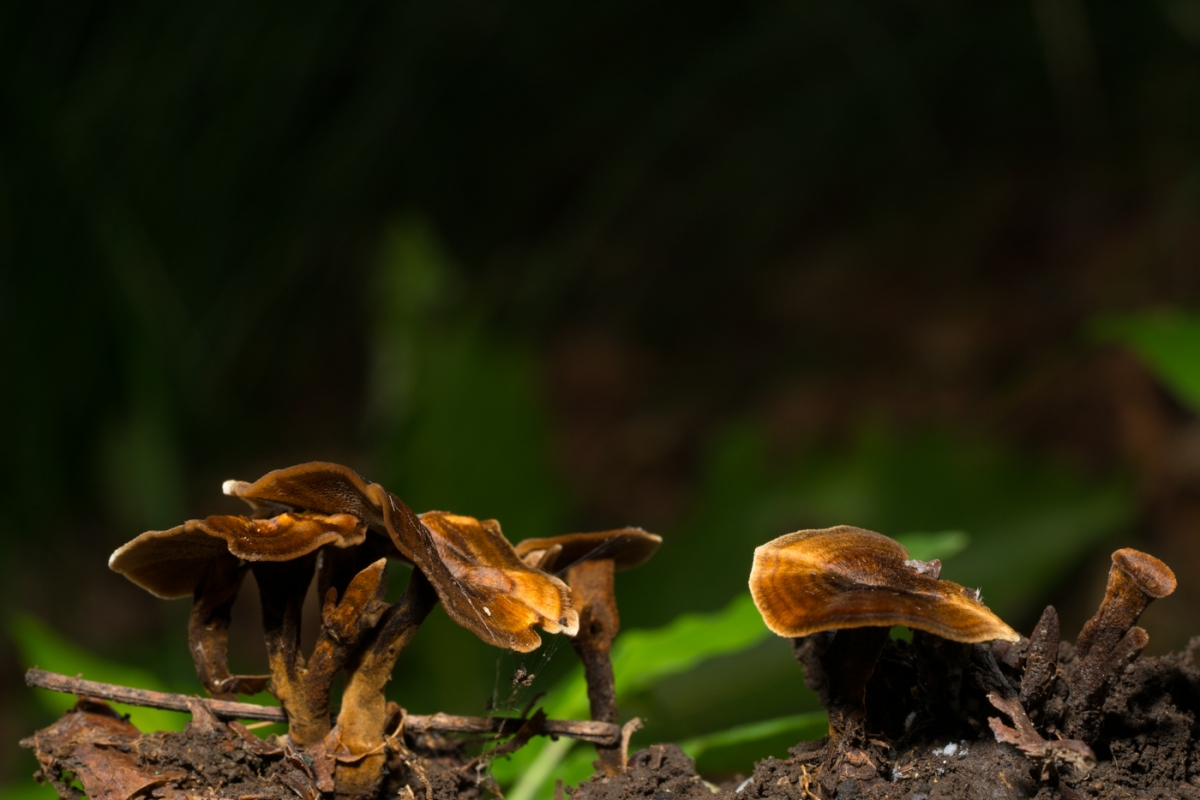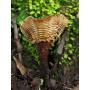 | 자실체 | 갓은 1~4cm 로 원형~깔 때기형으로, 적갈색~황갈색이며 방사상의 섬유무늬와 동심상의 환문이 있고 비단상 광택이 있다. 갓 둘레는 톱니상이다. 관공은 황갈색~암갈색이며, 관공구는 다각형에 크다. 대는 1~4cm 이고 원통형이고 중심생~편심생이며, 흑갈색의 비로드상이다. |