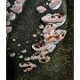 | 발생형태 | 여름~가을 소나무 등의 죽은 고목에 중첩하여 군생 |