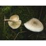 | 자실체 | 갓은 2.5~10cm로 깔때기모양이다. 표면은 백색이고 처음에 인편이 있으며 나중에 약간 광택이 있는 인편으로 변한다. 살은 백색이고 얇다. 주름살은 내린주름살로 백색이며 약간 밀생하고 포크형이 있다. 가장자리는 고르다. 대는 1~5cm, 굵기는 0.2~0.8cm로 원주형으로 중심생, 편심생 혹은 측심생 등이고 백색이다. 처음에 인편이 있지만 나중에 광택이 나며 밋밋한 인편으로 변한다. 속은 차 있다. |