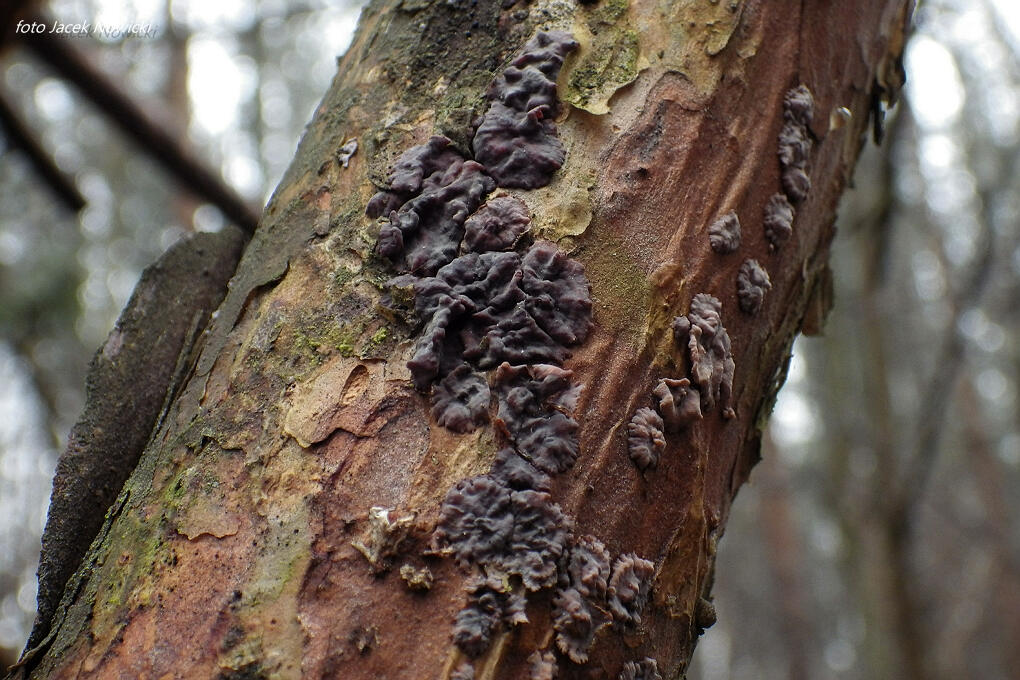 | 발생형태 | 연중 내내. 소나무류의 잔가지 수피에 난다. 습할 때 많이 보이고 건조기에는 오므라들거나 잘 나타나지 않는다. |