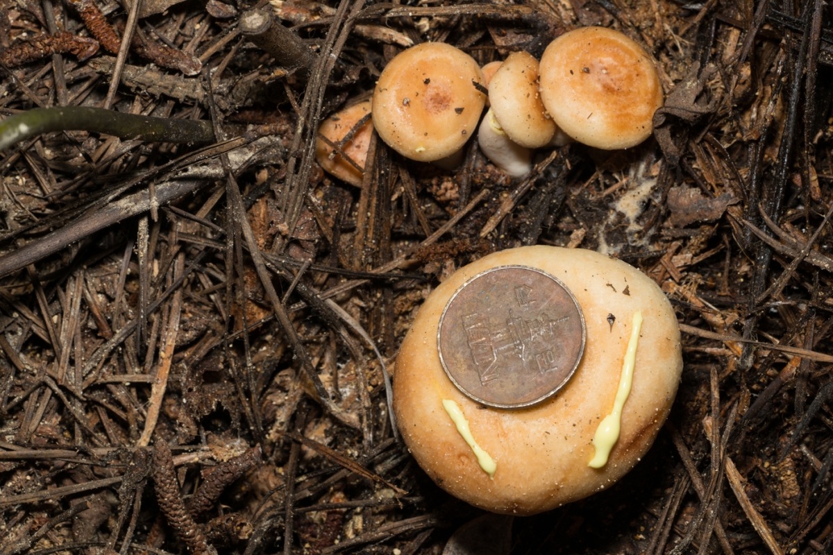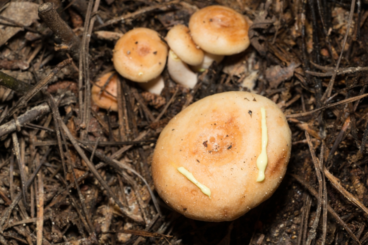 | 특징 | 소형∼중형. 금이 흘러나오는(chrysỏrrheus) 버섯. 갓은 갈색을 띤 계피색∼살색, 주름살은 크림색. 상처주면 황색 젖이 나온다. 색깔 변화가 크다. 형태와 색깔 변화가 큰 편이지만, 노란 젖이 나오는 특징으로 구분된다. |