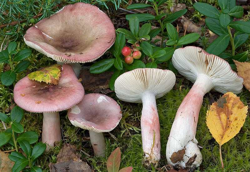| 특징 | 소형, 중앙은 약간 강한 무딘 톱니상, 광택이 나고 미끈거리며 연한 적색~적보라색, 부분적으로 적색의 올리브녹색. 주름살은 백색~크림색 |