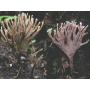| 자실체 | 자실체는 싸리버섯과 비슷한 산호모양∼관목의 가지모양으로 지상에 부착된다. 밑동에서 올라온 대가 분지하면서 가늘어지며, 그 끝은 혀 모양 또는 주걱모양을 이루면서 뭉뚝한 형이 된다. 자갈색∼암갈색이고 가지들의 끝은 회갈색이다. 표면은 평활하다. 살아있는 자실체에서는 강한 불쾌한 냄새가 있다. |