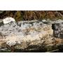| 특징 | 자실체는 배착생이고 흰색 또는 옅은 황색을 띤다. 자실층은 평활하며, 10배 배율의 렌즈로 관찰할 경우 작은 미세돌기가 관찰된다. 균사형(균사체계)은 일균사형, 얇은 균사벽을 가지며, 연결꺽쇠를 지니고, 폭 1.7∼2.8㎛. 박벽낭상체는 끝마디가 부풀어 있고, 크기는 20∼28×2.8∼3.5㎛이다. 담자포자는 소시지모양, 벽이 얇고, 평활, 비 전분반응. 4.5∼5.2×1∼1.2㎛. 발생: 소나무 둥치에서 발생. (분포) 한국, 일본, 중국, 유럽, 북미. |