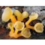 자실체 : 자실체의 길이는 4~8㎜이고 같은 폭이고 끝은 뭉뚝하다. 기부는 융합되었고 연골질이고 원통형이다. 외부의 색은 황색에서 등황색이고 자실층은 양쪽면에 있거나 간혹 한면에만 만든다.