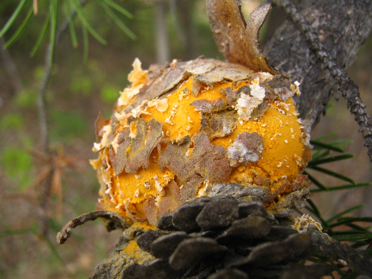 특징 : 소나무 줄기나 가지에 20∼30cm 정도 크기까지 이르는 큰 혹을 만드는 균이다.