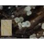 | 포자 | 포자는 타원형, 평활, 투명, 4.5∼7×2.5∼3㎛. 자낭은 8개의 포자가 들어 있고 한줄로 들어 있다. 45∼55×4.5∼5㎛. 측사는 다소 끝이 뾰족하다. 다소 드물다. 원주상, 격막은 없다. 강모체(털)는 투명하고, 여러 개의 격막을 이루고 있으며, 미세하게 결정체가 붙어 있다. |
