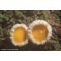 | 자실체 | 자실체는 1∼5(8)mm의 극소형. 어릴 때는 술잔 모양이나 곧 불규칙한 컵 모양∼접시 모양이 된다. 뚜렷한 대가 있다. 표면 자실층은 평활하거나 결절모양 또는 굴곡된 모양이고 황색∼오렌지색. 가장자리와 하면은 밝은 색이며, 백색의 털이 펠트모양 덮여 있다. 가장자리는 다소 굴곡이 되어 있다. 대는 대가 있다. |
