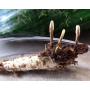 | 특징 | 기주의 몸에 흑록색의 분생자르 형성 이 버섯의 속은 Anamorphic Metacordyceps (고무동충하초속 불완전세대)로 기록되어 있다. |