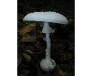 특징 : 소형∼중형. 심하게 돌출된(abruptus) 밑동을 가진 버섯. 갓은 백색, 작은 알갱이 모양 사마귀가 무수히 부착된다. 대의 밑동은 구형으로 돌출된 특징이 있다.