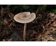 특징 : 중형. 둥근산형∼평평한 형, 중앙에 둔한 돌출, 후에 오목해진다. 황갈색, 회갈색∼올리브갈색. 우산버섯 비슷하나 색깔이 진하고 가장자리 줄무늬가 심하다.