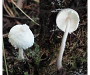 특징 : 극소형∼소형. 갓과 대에 회갈색 분질물이 덮여 있고, 주름살이 분홍색∼암적색. 가장자리 피막 잔존물. 이 버섯은 책자에 따라 다소 설명에 차이가 있다.