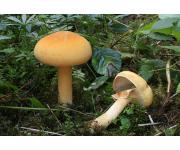 자실체 : 갓은 폭 5∼12(15)cm 정도의 중형∼대형. 어릴 때는 원추형∼반구형, 후에 둥근산형∼평평한 형이 되며 중앙이 약간 돌출되거나 또는 오목하게 들어가기도 한다. 표면은 황금색∼황토색이고 표면에 같은 색 또는 진한 색의 가루가 밀포되어 있다. 오래되면 방사상의 줄금이 있다. 살은 백색이다가 연한 황색이 된다. 맛이 좋은 식용균이지만 일부 계통은 설사, 복통 등을 일으키는 사례가 보고되어 있다.