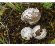 특징 : 소형. 직경 2∼3cm, 거북찹쌀떡보다 작다. 구형∼아구형. 외피는 백색, 두껍다. 후에 달걀껍질 모양 박편으로 떨어지고 회백색 내피층이 들어난다.