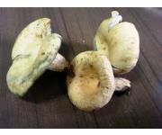 특징 : 중형. 회청색으로 되는(glaucẻscens) 버섯. 갓은 백색∼크림색, 후에 칙칙한 황갈색∼황토황색 얼룩. 대는 백색∼크림색. 유액은 백색이나, 3∼4시간 후 녹색을 띤다. 굴털이와 흡사함. 처음에 백색 유액아 비교적 많이 나온다.