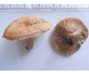대는 2∼5cm(굵기10 20m), 갓과 거의 같은 색. 상하 같은 굵기이거나 밑동이 가늘다. 표면은 평활 또는 약간 분상, 속이 차 있거나 비기도 한다. 간혹 청록색의 얼룩이 있다. 살은 허연색이나 대의 표면 부근이나 주름살 윗부분은 적갈색을 띤다. 단단하고 유액은 암홍갈색. 청록색이 된다.