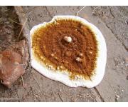 때로는 오래된 자실층에서는 녹슨 색의 균사가 섬유상으로 수없이 늘어지기도 한다. 살은 섬유질을 띤 스펀지 상인데 연하지만 건조할 때는 약간 부서지기 쉬운 가죽질이 된다. 표면에는 때때로 물방울이 분비된다.