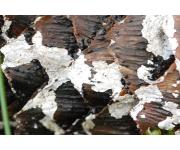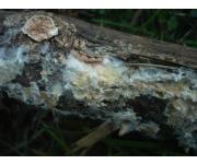 특징 : 배착생. 흰색∼크림색 또는 황색 끼. 오래되면 갈라지기도 한다. 죽은 가지, 낙엽 등에 매우 얇게 퍼지거나 명확한 경계를 이룬다. 색깔, 형태변화가 크다.