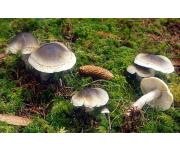 특징 : 소형, 갓의 중앙은 약간 낮은 볼록형이다. 표면은 벨벳 같은 부드러운 털로 덮인다, 회색 또는 물푸레나무색, 곤충 썩는 냄새가 난다. 독버섯