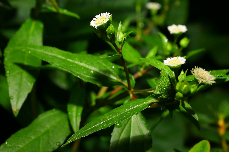 꽃 : 꽃은 8~9월에 가지 끝과 원줄기 끝에 흰색의 두상화가 한 개씩 달리며 지름 1cm 내외이고 화경은 길이 2~4cm 정도이다. 설상화관은 끝이 밋밋하거나 두 개로 갈라진다. 통상화는 연한 녹색이며 꽃부리가 네 개로 갈라진다.