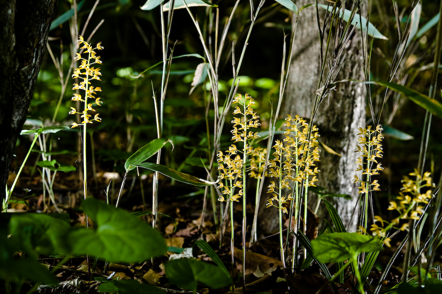 꽃은 5~6월에 피고 황갈색이며 높이 30~50cm정도의 화경(花莖)에 핀 후 지상부가 말라 버린다. 화경(花莖) 밑부분에 초상엽이 2개 정도 있고 포는 막질이며 피침형이고 길이 4-6mm로서 끝이 뾰족하다. 꽃받침잎과 꽃잎은 긴 타원상 피침형이며 길이 1cm로서 황갈색이고 순판은 백색 바탕에 반점이 있으며 밑 부근에서 3개로 갈라진다. 측열판은 피침형이고 끝이 둔하며 중앙열편은 쐐기형에 가까운 도란형이고 끝이 둥글며 잔톱니가 있고 길이 4-5mm로서