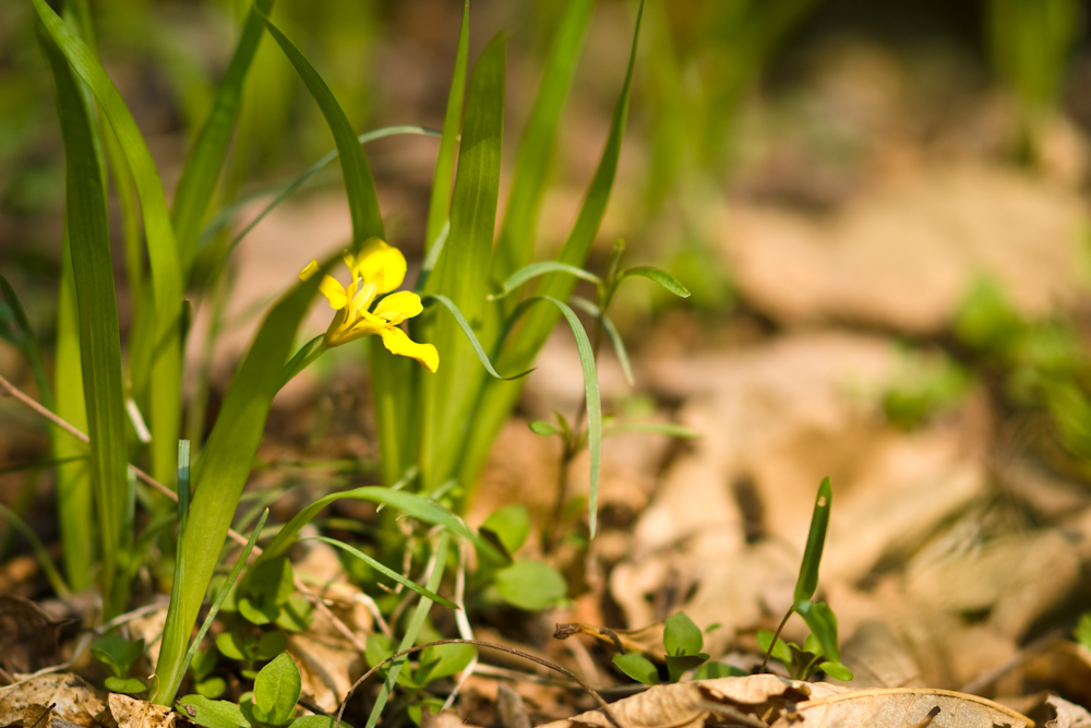 | 꽃 | 꽃은 4~5월에 황색으로 피꽃은 4~5월에 황색으로 피고 화경은 곧추 서있고 끝에 2개의 포가 1개의 꽃을 싸는 정생화서이며 꽃의 지름은 2~3.8cm이고 포는 선상 피침형으로 길이 5.3~8cm이다. 외화피는 장 도란형 또는 주걱모양으로 길이 2~2.7cm이고 끝이 파진다. 내화피편은 도피침형으로 길이 1.5~2.3cm이고 곧추 선다. 암술대는 갈라지고 자방의 횡단면은 3각상이다. |