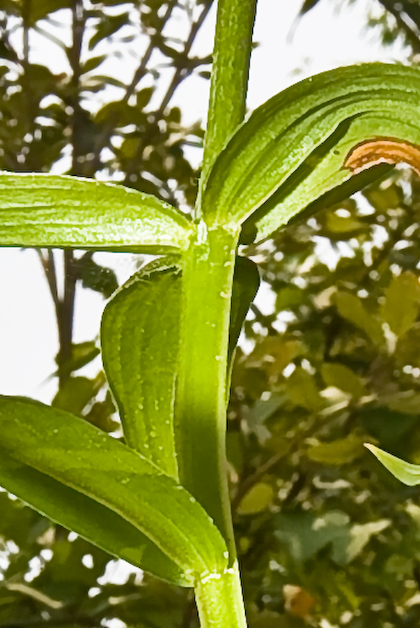 줄기 : 줄기는 중부에 드물게 3개의 잎이 달리며 긴 엽병이 있으나 지하로 묻혀 지상에는 엽신만이 나타난다. 땅 속 깊이 들어 있는 통상 장 타원형의 인경은 길이 5~6cm 나비 약 1cm이며 기부에 전년도의 인경의 밑부분이 붙어 있고 외피는 황갈색을 띤다.