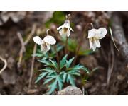 꽃 : 꽃은 4~6월에 백색으로 피고 잎 사이에서 화경이 나와 1개씩 달리며 중앙이하에 포가 있다. 꽃은 좌우 상칭이고 5수성이며 꽃잎에 자주색 맥이 있고 측판에 털이 다소 있으며 꽃받침의 부속체는 4각형 비슷하고 끝에 약간의 톱니가 있으며 거는 짧은 원통형이다.