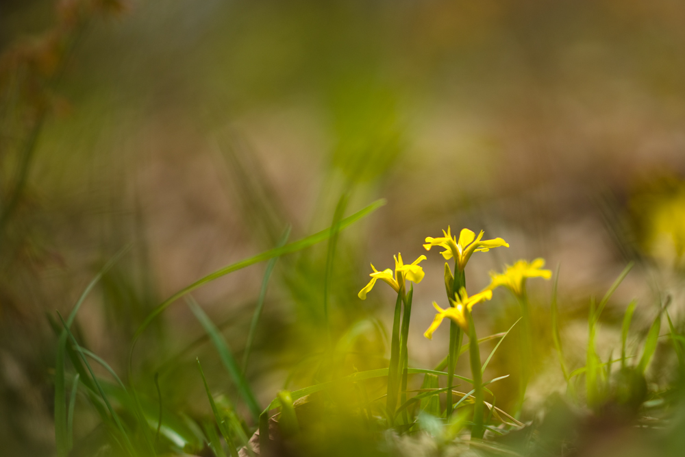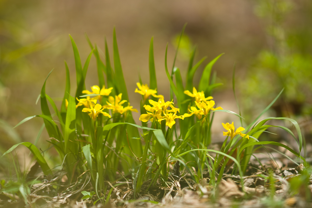 꽃 : 꽃은 4~5월에 황색으로 피꽃은 4~5월에 황색으로 피고 화경은 곧추 서있고 끝에 2개의 포가 1개의 꽃을 싸는 정생화서이며 꽃의 지름은 2~3.8cm이고 포는 선상 피침형으로 길이 5.3~8cm이다. 외화피는 장 도란형 또는 주걱모양으로 길이 2~2.7cm이고 끝이 파진다. 내화피편은 도피침형으로 길이 1.5~2.3cm이고 곧추 선다. 암술대는 갈라지고 자방의 횡단면은 3각상이다.