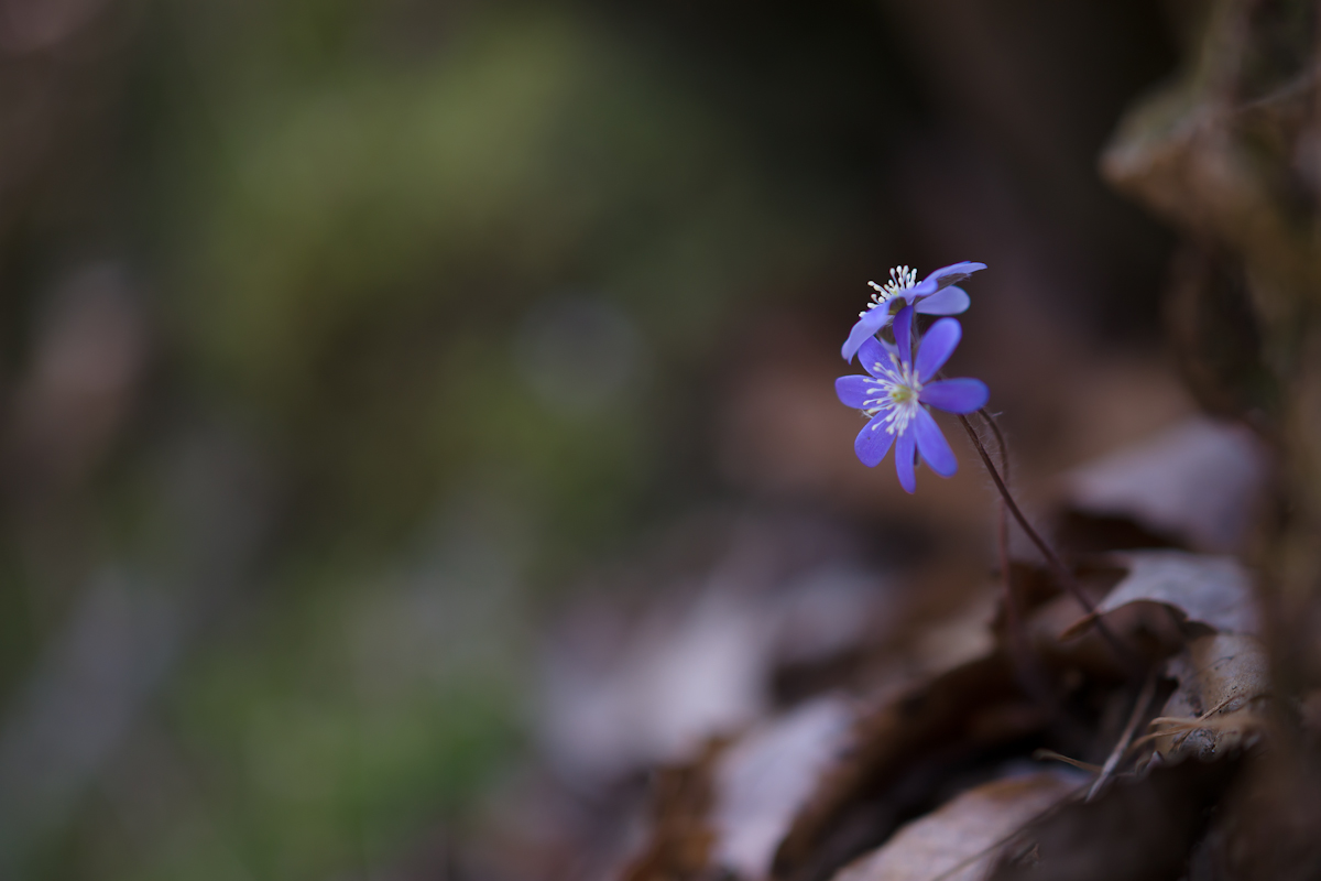 잎은 길이 5cm정도로서 모두 뿌리에서 돋고 긴 엽병이 있어 사방으로 퍼지며 심장형이고 가장자리가 3개로 갈라지며 밋밋하다. 중앙열편은 삼각형이며 양쪽 열편과 더불어 끝이 뾰족하고 이른 봄 잎이 나올 때는 말려서 나오며 뒷면에 털이 돋은 모습이 마치 노루귀와 같다.