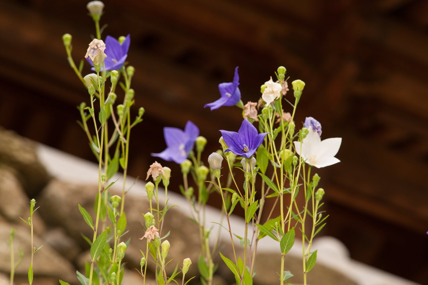 꽃 : 꽃은 7-8월에 피고 하늘색 또는 백색이며 원줄기 끝에 1개 또는 여러개가 위를 향해 달린다. 꽃받침은 5개로 갈라지고 열편은 길이 0.5-5mm로서 삼각상 피침형이며 화관은 끝이 퍼진 종형이고 지름 4-5cm로서 끝이 5개로 갈라지며 갈라진 끝은 삼각형이다. 자방하위에 웅애 선숙화로 끝에서 종자를 맺는다. 자방은 5실이며 5개의 수술과 1개의 암술이 있고 암술대는 끝이 5개로 갈라진다.